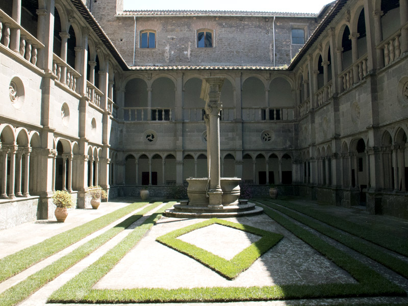 Irene Temperini ha aggiunto informazioni riguardanti l'importanza storica: "E' il primo complesso dichiarato bene culturale dallo Stato, più di un secolo fa. Ho sempre pensato che San Pellegrino in fiore vada esteso ad altri luoghi e quartieri, per dare altre oppurtunità ai numerosi turisti che la visitano in questi giorni. La mostra evidenzierà il rapporto tra basilica e città di Viterbo, il legame tra il centro e questo borgo ma anche la grande storia religiosa, con 19 papi passati da qui e 27 in totale che hanno concesso voti di indulgenze e atti, concentrandoci su Giulio II e Paolo III, che donò i 60 kg oro per la decorazione del soffitto. Lunedi 30 aprile è prevista anche una visita notturna con fiaccole che illumineranno i due chiostri, alla scoperta di tutti gli ambienti del complesso monumentale, compreso il refrettorio e il museo degli ex voto. Ringrazio don Massimiliano a nome della città per la sua apertura e disponiblità nel mostrare queste bellezze, che vengono vissute e si riempiono di vita. Grazie a De Simone, al Comune e a Chiara Frontini, fondatrice della Pro loco con me sei anni fa, che sta lavorando sul progetto Unesco".