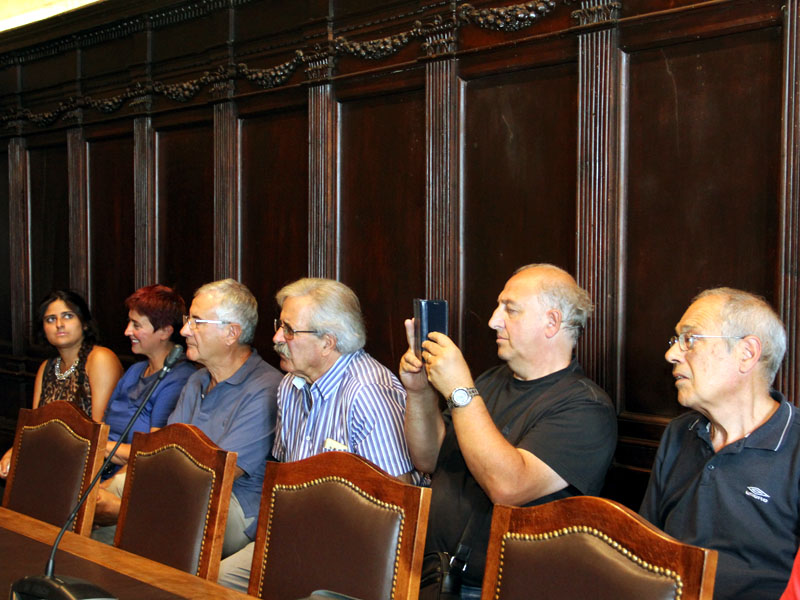 E' l'assessore De Carolis ad accogliere gli organizzatori: "Complimenti per l'iniziativa, che ha 22 anni di storia, un raduno che porta tante persone da ogni parte d'Italia e li porta anche in visita a Teatro e Basilica Santa Rosa".