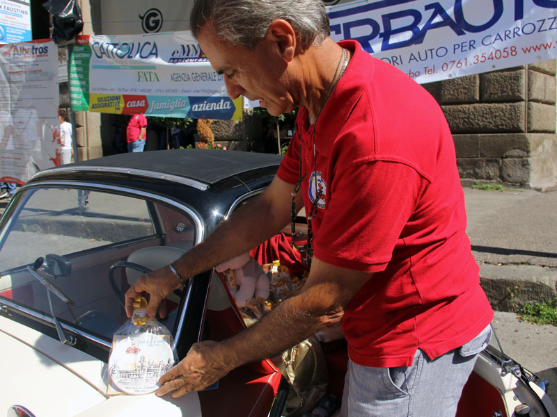A metà mattinata le auto iscritte erano già ben 200 e proseguivano ad arrivare equipaggi: "Sono orgogliosissima di questa giornata, che si è svolta in modo perfetto e senza alcun disagio per la viabilità. Quaranta persone sono già partite per la visita al teatro dell'Unione - ha sottolineato Mara Piergentili, presidente del 500 Tuscia Club - e un centinaio andranno a conoscere la vita di Santa Rosa, con la visita nella casa e al santuario, e la tradizione che ogni anno porta al Trasporto della Macchina. Al loro fianco un Facchino di Santa Rosa, cortesemente inviato dal Sodalizio, che potrà raccontare perfettamente le emozioni e la forza necessaria la sera del 3 settembre".