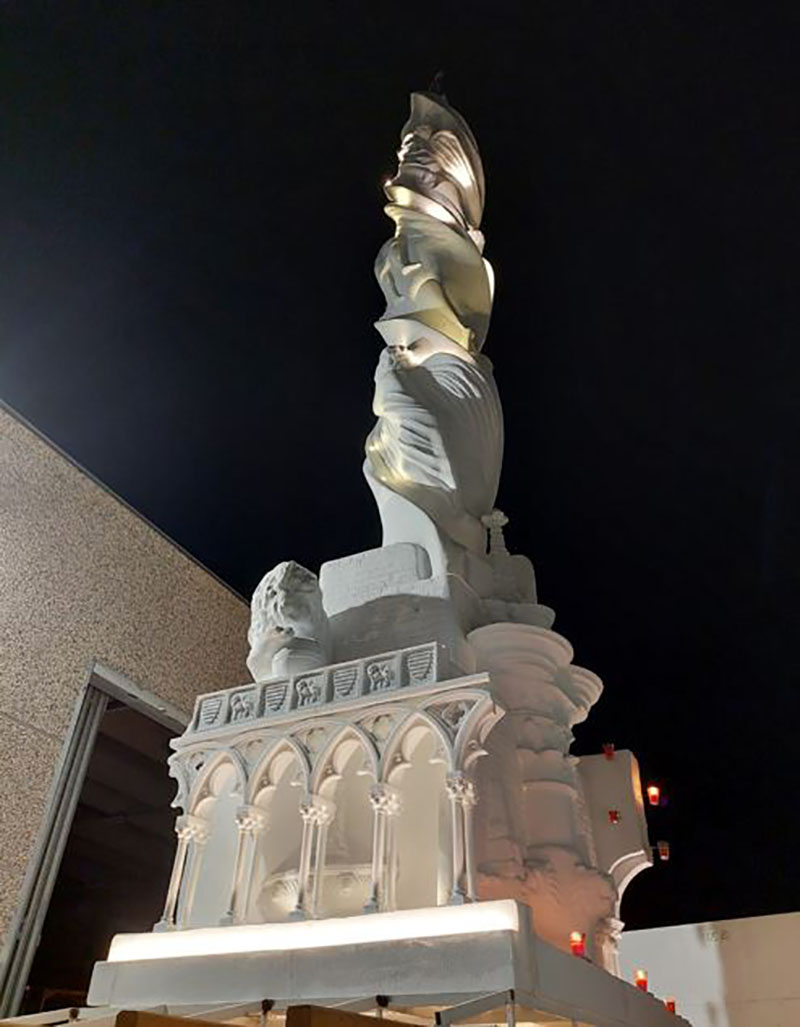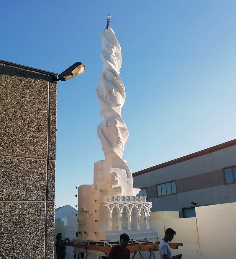 Alla ditta Mastro è andata in scena la prima assoluta di montaggio, alla presenza del comitato, della famiglia Joppolo e dell'architetto, seguita dalla prima prova luce, che ha mostrato l'impatto notturno.