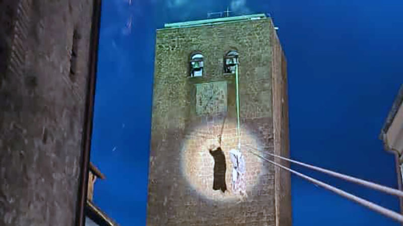 Nel pomeriggio di ieri infatti, a bordo della sua scopa magica, la befana è comparsa in cima alla famosa Torre dell’Orologio nel borgo di Bassano. E da lì, sospesa in aria, si è calata verso i bambini bassanesi che la stavano aspettando accompagnati dai loro genitori.