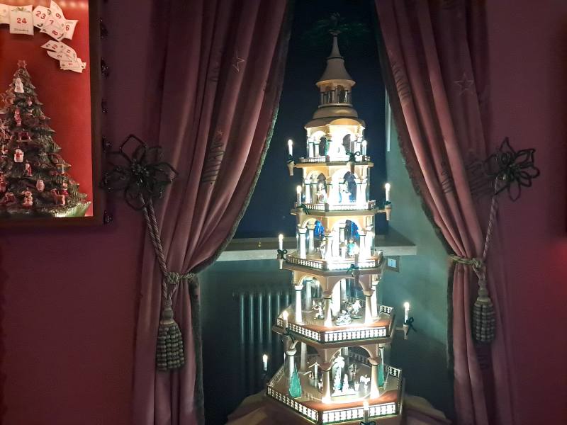 La prima sala, quella dei carillon, non poteva che ospitare l'albero che non c'è, che fluttua magicamente, seguita da quella delle favole, con i personaggi più amati dai bambini protagonisti di villaggi incantati; degna di nota la piramide di Natale, che ospita un presepe girevole meraviglioso.