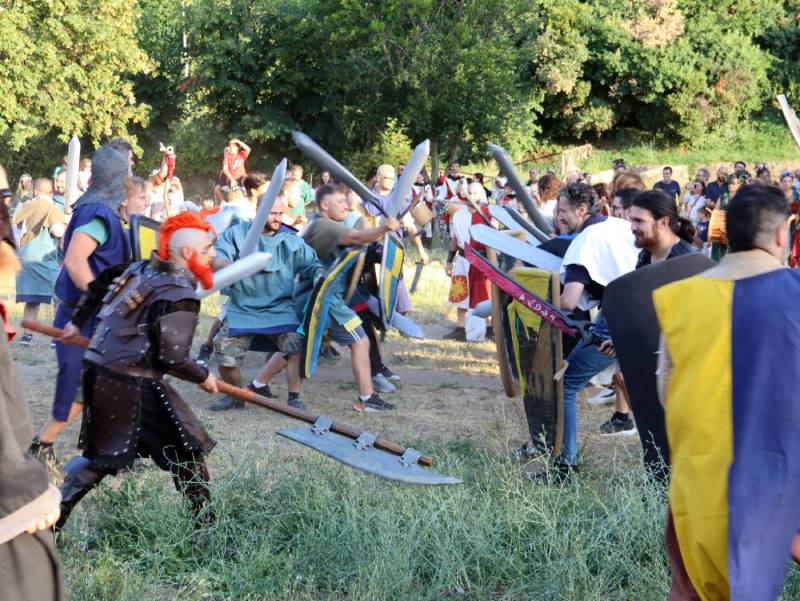 L’atmosfera medievale culmina, come sempre, nella battaglia campale che contrappone i due storici eserciti dei guelfi e ghibellini, le truppe papaline da una parte, quelle imperiali dall’altra, pronte a confrontrarsi in un gioco in cui nessuno vuole mai perdere, dopo aver sfilato per le vie della città, annunciati dai Musici e dai figuranti del Pilastro.