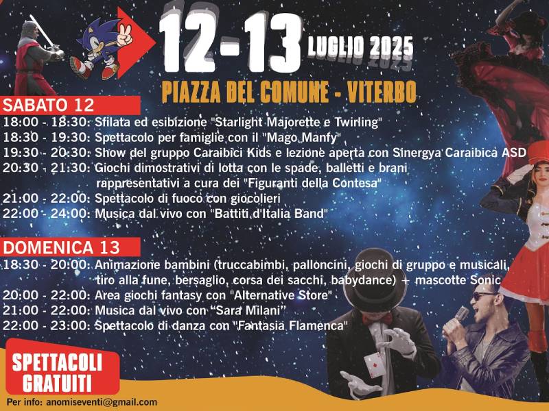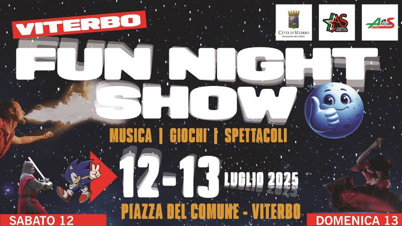 VITERBO - Fine settimana di divertimento in piazza del Plebiscito con "Fun Night Show" a Viterbo ‼, in programma ogig e domani, 12 e 13 luglio 2025.