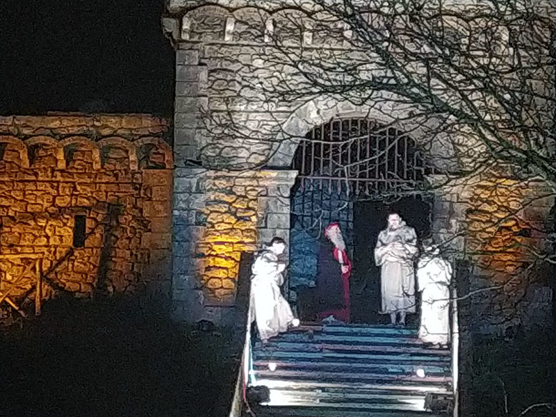 GRECCIO - Sopra il Santuario che domina la vallata, sotto una tribuna sempre piena di pubblico, nonostante il tempo non troppo clemente di inizio anno: è il Natale di San Francesco, rievocazione organizzata da decenni dalla locale Pro loco che quest'anno ha celebrato l'ottocentesimo anniversario dal primo presepe inventato proprio dal santo di Assisi.