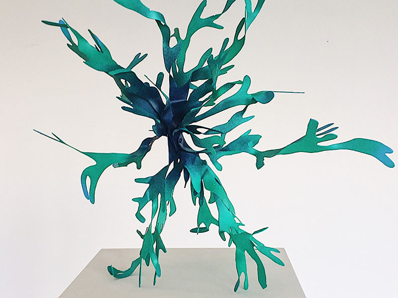 Muovendosi liberamente tra le immagini colorate e le svariate forme naturali proposte dalle tavole di Hëckel, Barbieri ha elaborato un’ampia serie di lavori plastici, di disegni e oggetti di diverse dimensioni e materiali che saranno disposti nello spazio, a terra o alle pareti senza soluzione di continuità, sollecitando associazioni formali e cromatiche tali da creare un tipo di ambiente simile ad un laboratorio di biologia, in cui lo scambio reciproco tra arte e natura vuole restituire una visione d’insieme caleidoscopica data dal continuo variare di elementi fitomorfici e geometrici, stilizzati e ornamentali.