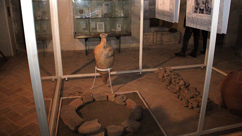 Tra i reperti in mostra la bellissima anfora con scrittura corsiva “Oliva Ni[gra] L(ucios) Man(ius) (Severus?)” e un capitello ionico letteralmente fatto a pezzi ed utilizzato come blocco al riempimento del canale, oggi ricostruito ed esposto nella sala dove sono anche presenti “tegulae mammatae” e resti laterizi, alcuni molto rari, come del marmo colorato e parti di una "fenestra clathrata".