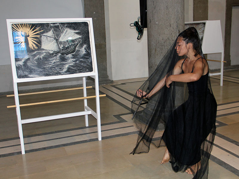 Non resta che ammirare l'opera, districandosi tra le voci rilanciate dalle casse e la performance di danza che in alcuni momenti propone Jessica De Masi (su coreografie di Loredana Parella).