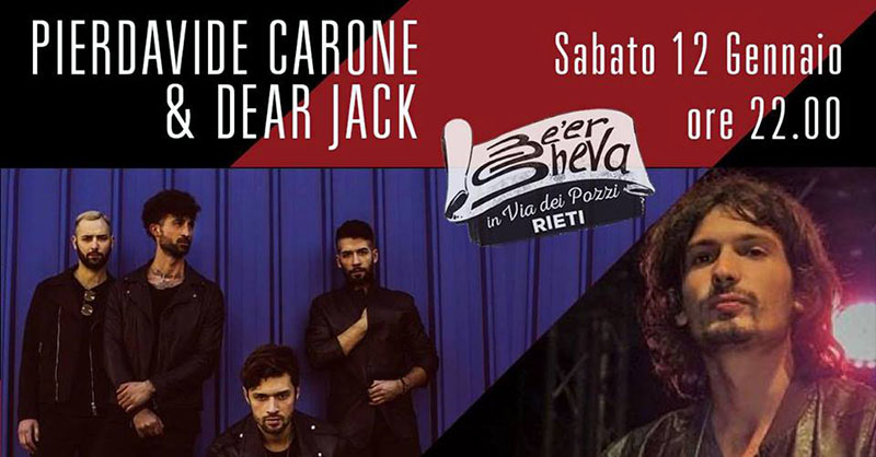 E arriva il momento di sentirli insieme: la prima sarà l'11 gennaio al Memo Club di Milano, mentre sabato 12 gennaio arriveranno vicino casa, a Rieti, al Be'er Sheva in via dei Pozzi, dove alle 22 saranno insieme Pierdavide Carone e i Dear Jack con la loro Caramelle e la loro potente musica.