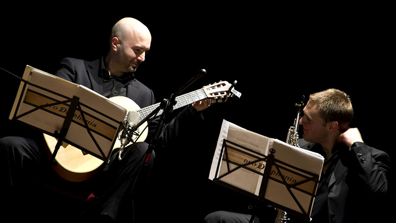 I due (diploma di strumento e diploma accademico di secondo livello in discipline musicali) si sono messi insieme con impegno e serietà professionale per esplorare e approfondire le affascinanti sonorità dall’unione di due strumenti che raramente collaborano in ambito classico, per l’appunto la chitarra e il sax soprano. Le trascrizioni sono pensate per accompagnare gli spettatori attraverso diverse aree geografiche e differenti periodi storici. L’appuntamento si avvale del patrocinio e contributo della Fondazione Carivit, della direzione artistica dell’associazione “Enarmonia”, della collaborazione della parrocchia di Santa Maria della Grotticella e del sostegno di Terme dei Papi, Terme Salus, Balletti Hotels e Resorts e della Scuola paritaria di Santa Maria del Paradiso.
