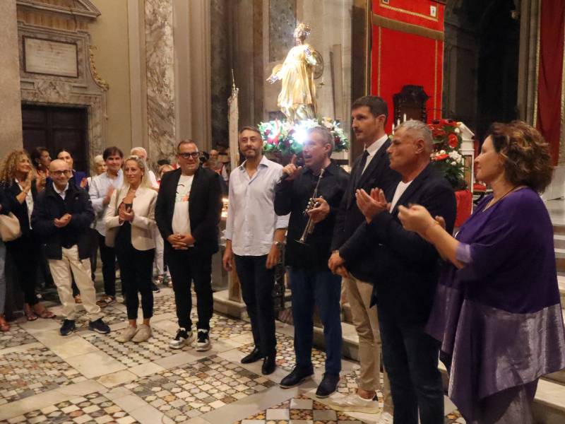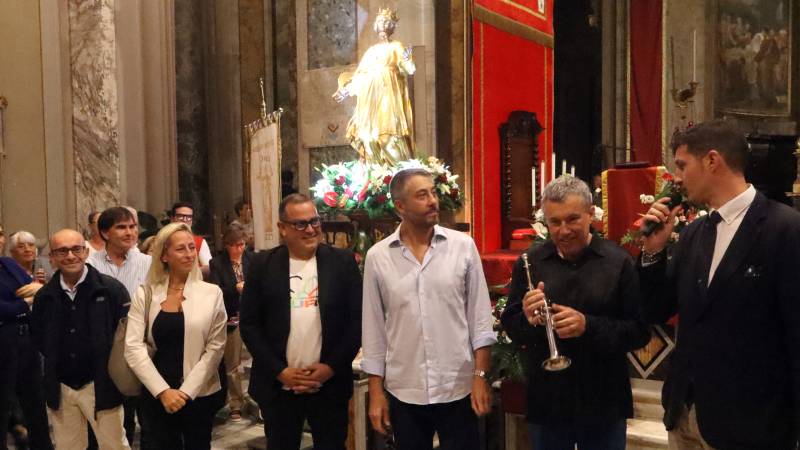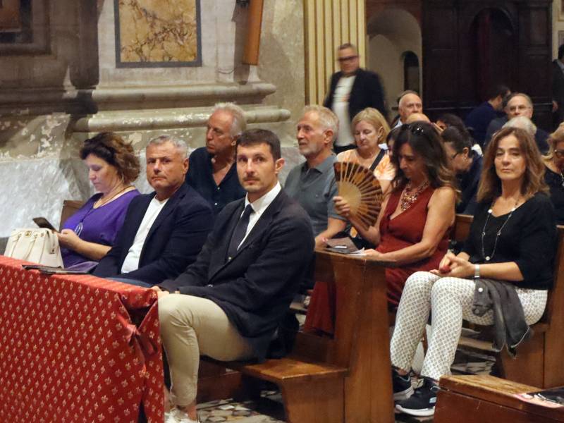 Chiesa completamente piena, complice il legame con Santa Dolcissima ma anche l'affetto che i sutrini tributano da sempre ad un figlio di questa terra che ha girato il mondo incantando con la sua tromba, forte anche del legame con uno dei più grandi compositori moderni, Ennio Morricone.