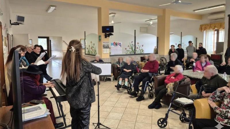 VITERBO -Domenica 15 marzo entusiasmante performance del Coro “San Faustino – Schola Cantorum Maria SS. di Costantinopoli” diretto da Daniela Sabatini e del “San Faustino Ensemble” con la stessa Sabatini al pianoforte e la violinista Raffaella Sabatini al violino nel “Concerto per la Pace” tenuto per gli ospiti della Casa di Cura Villa Noemi che hanno assistito con grande attenzione all’intero concerto tributando ad ogni brano scroscianti applausi.