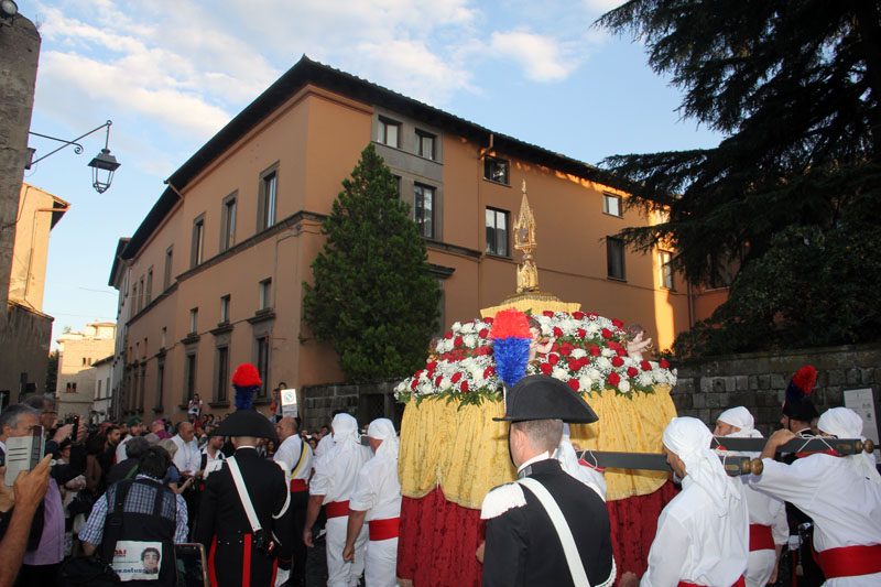 Al termine è partito il corteo, al suono delle chiarine, dei tamburi e delle campane del duomo, seguito dalle associazioni, dal clero e dagli amministratori, presente il sindaco Arena, i senatori Battistoni e Fusco, l'assessore regionale Troncarelli, il presidente della provincia Nocchi, assessori e numerosi consiglieri.