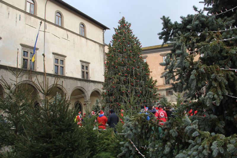 Una vera festa, che ha riempito di Babbi natale piazza del Plebiscito, compresi gli amici a 4 zampe che hanno salutato l'avvio della gara. Dopo la prima foto di rito, nel cortile di Palazzo dei Priori, partenza e nuova sosta sulla scalinata del Palazzo Papale.