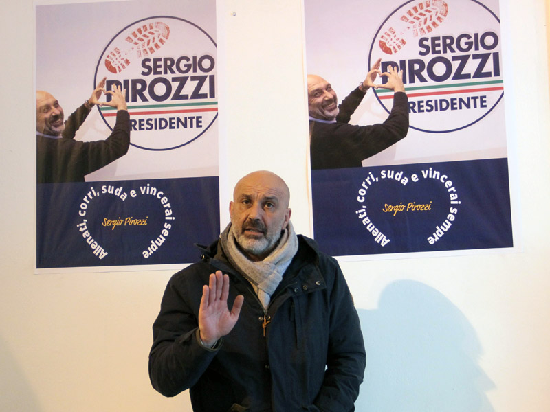 "Metto sotto accusa gli ultimi 30 anni di questo territorio - esordisce, forte delle mani libere dalla mancanza di partiti ordinari in suo appoggio - E' evidente il progressivo spopolamento dei servizi, specie in sanità, qui è mancata sempre un'idea, hanno fatto solo tagli. Se sei cittadino di serie A fai intramenia, altrimenti aspetti. E' successo in ogni settore. A questo aggiungiamo il vizio di noi di provincia, che tendiamo a dividerci. Ho fatto battaglie, le ho anche vinte e sono servite alla sopravvivenza del mio territorio ma se rimani solo sei destinato a perdere. Quando arriva la tragedia vedi che i 'grandi' non conoscono nulla e arrivano a fare provvedimenti fotocopia, quando il Lazio è infinitamente diverso. Io sono per decentramento, che non è quello che taglia i piccoli ospedali e i trasporti nelle provincie. L'ente di prossimità che decide per noi è la Regione, quello che fa i bandi per togliere le macerie e ... siamo 'a caro amico', lo stesso sugli sms. Per questo ho scelto uomini liberi, liberi, liberi - ripete tre volte, per poi togliersi il primo sassolino dalla scarpa... destra -: una squadra che vuol vincere il campionato non sceglie l'allenatore a pochi giorni dal campionato. Io sono uomo di esperienza".