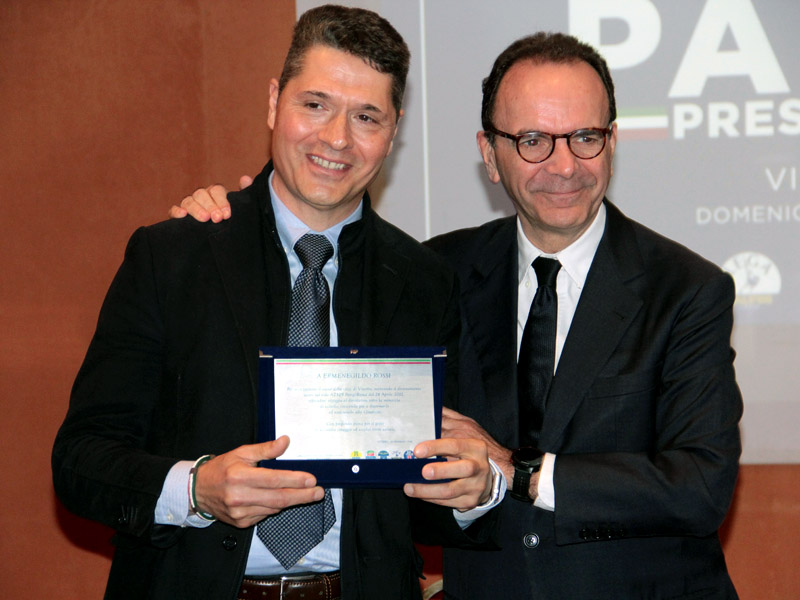 E' il momento di Parisi, che prima dell'intervento politico chiama sul palco Ermenegildo Rossi, stewart viterbese che nel 2011 si offrì ostaggio al dirottatore che aveva bloccato una collega hostess in volo, sulla Parigi-Roma, un gesto che la salvò e finì con il malintenzionato bloccato e fermato, dopo una colluttazione proprio con Rossi. "È viterbese, ma questa città che non lo ha mai premiato. Oggi lo premiamo noi", precisa malizioso Parisi mentre porge la targa ricordo.