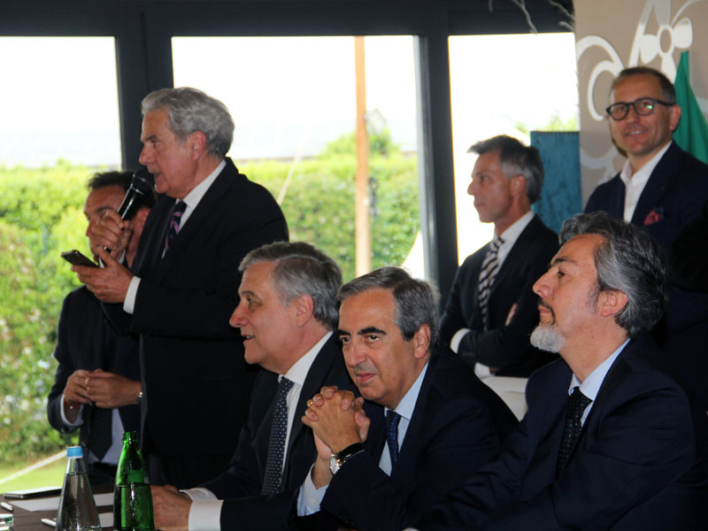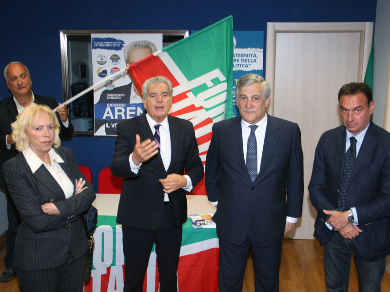 In chiusura il presidente Tajani, che dopo l''incontro istituzionale del mattino all'Università, può sfogare la sua passione politica: "Giovanni Arena merita di essere il sindaco di Viterbo perché non ha mai mollato, anni di impegno con coerenza e impegno. Dobbiamo riconoscere la coerenza e il suo amore, il miglior sindaco che può avere Viterbo, sempre sotto la guida del padre, che fu sindaco. È un punto di riferimento per tutti perché non sarà il primo cittadino di chi ha vinto ma di tutti i viterbesi: questa è la differenza tra noi e gli altri. Governare la città con idee e valori, perchè noi siamo diversi dalla sinistra e dai grillini, che a Roma stanno dimostrando di non saper fare. L'attaccamento alla festa di Santa Rosa dimostra cosa sanno fare i viterbesi, bisogna costruire il lavoro sostenendo imprenditori, agricoltori e professionisti, non si aiuta dando un reddito per fare nulla. La nostra forza è essere uniti, non solo in coalizione ma nel partito, l'unita è un bene prezioso. Per me è una gioia vedere Giulio capolista, per onere e onore, dimostrazione di quanto ciascuno riesca a dare una mano all'altro, tante volte lo ha fatto Giovanni, ora lo fanno altri per lui. È una bella squadra, con tante donne, tanti giovani, che si misurano per un'idea, e tanti professionisti. Il rinnovamento non ha a che fare con l'età ma con le idee. Ci invitiamo fin d'ora, io e Maurizio, per la prossima Santa Rosa ospiti del sindaco Arena: quando si crede nella vittoria, la vittoria arriva".