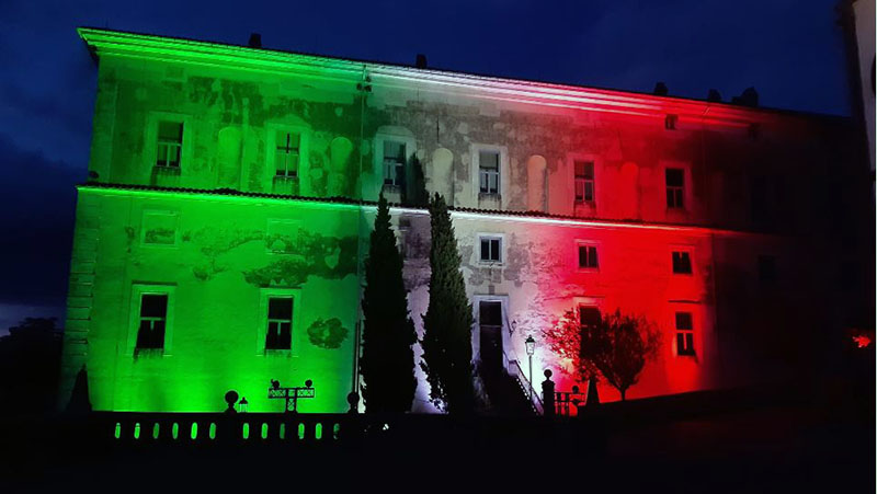 VITERBO - Dopo aver illuminato con il tricolore il Castello di Santa Severa, la Regione Lazio, con il supporto organizzativo di LAZIOcrea, ha deciso di proseguire in questa azione anche sulla facciata del Palazzo Doria Pamphilj a San Martino al Cimino.