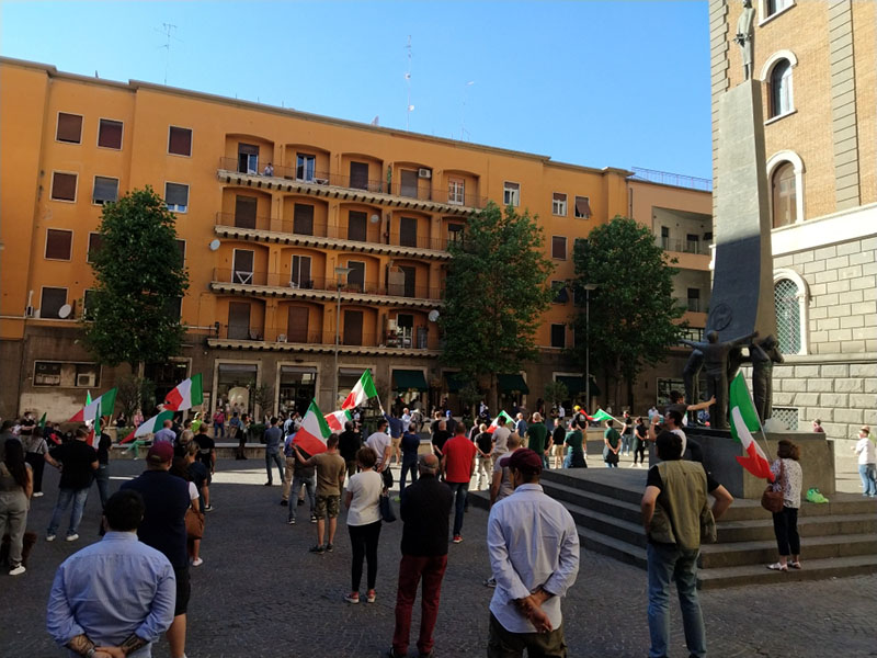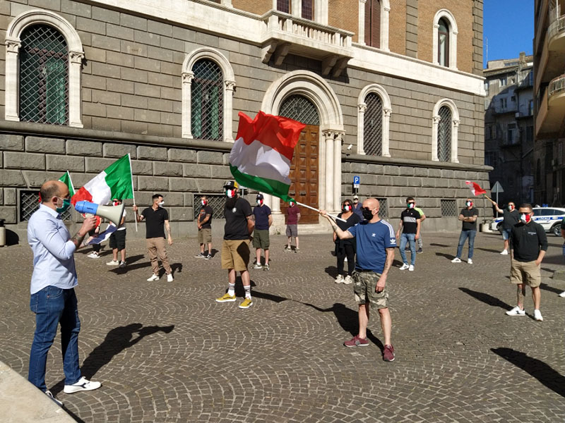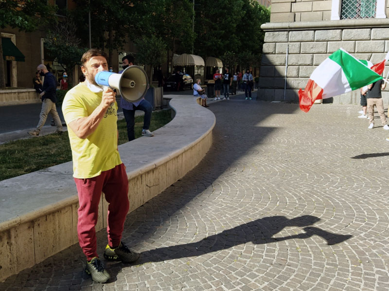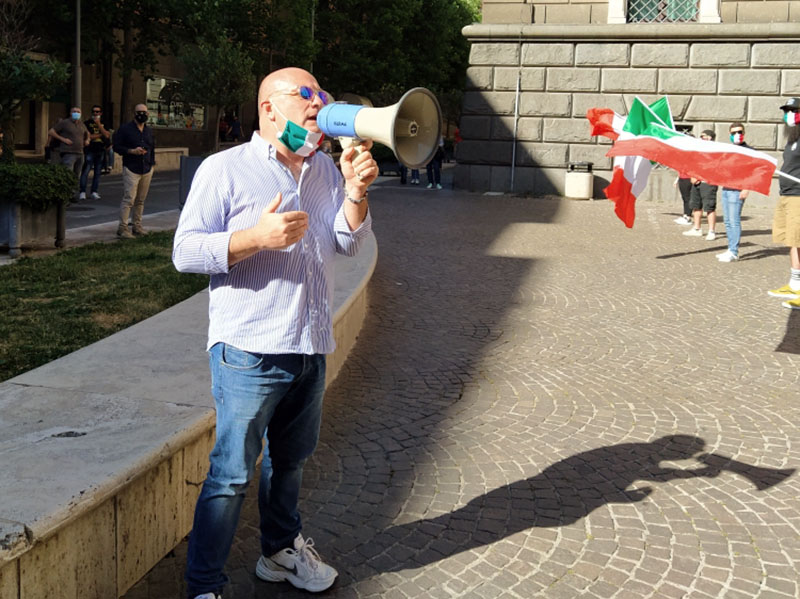Noi non siamo disposti ad abbassare la testa, voi avete deciso che l'Italia deve fallire e si finisce alla fame. Non lo consentiremo. Parola al popolo e governo a casa - conclude - riibellarsi oggi significa amare la Nazione perché la mascherina non è un bavaglio. Viva la libertà, viva l'Italia".