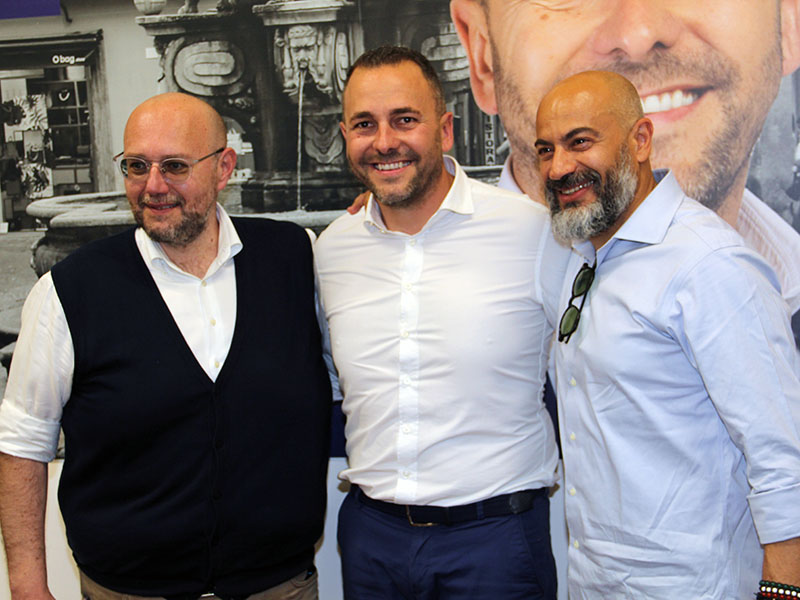VITERBO - Marco Cardona, in un colpo solo, inaugura la sede elettorale, presenta la lista dei candidati consiglieri e l'alleanza strategica con Paolo Bianchini, ex capogruppo di Fratelli d'Italia a Palazzo dei Priori, da tempo leader del movimento ho.re.ca. Mio, sempre in prima fila contro le restrizioni sul green pass. Tutto sotto gli occhi del leader di Italexit Gianluigi Paragone e cel collega senatore Willliam De Vecchis.