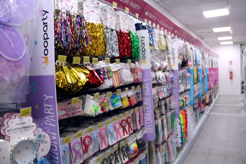 Si parte con il fornitissimo assortimento natalizio, dove non mancano offerte su ghirlande, luci, sfere ed appendini, per poi muoversi tra prodotti di ogni tipo: elettronica, auto, fai da te, pet store e oggettistica per animali, bricolage, giocattoli, cartoleria, accessori party fondamentali ad ogni festa da 0 a 100 anni.