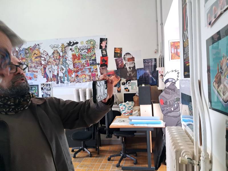 L'incontro con i responsabili si è poi tradotto in una breve visita alla mostra allestita per l'occasione nel cortile dell'Accademia, stavolta dedicata alla grafica e al futuro, grazie alla visione virtuale dell'app AeroViewer, che ha permesso di proiettare alcuni lavori degli studenti in ambienti attualizzati, dove far apparire monunenti e installazioni, grazie all'uso del cellulare.