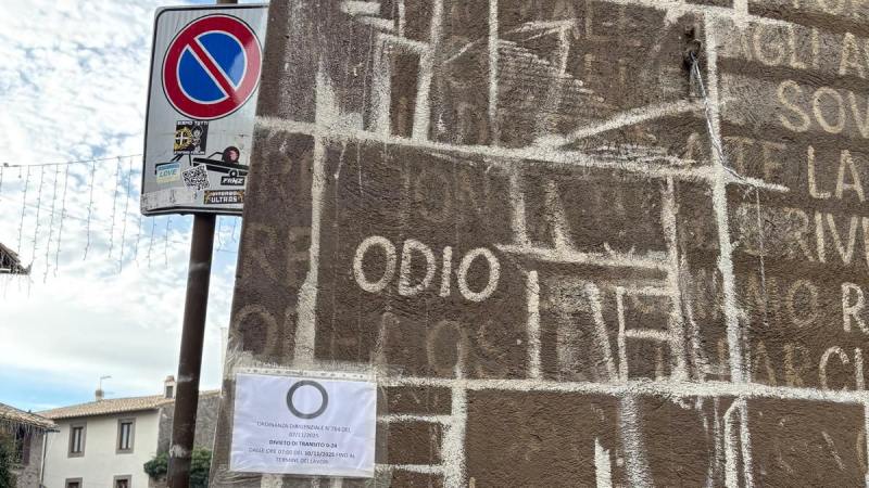 Queste le durissime parole dell'artista inerenti l'opera inaugurata anni fa sul muro del palazzo ad angolo tra via Pietra del pesce verso piazza San Carluccio, pubblicate sulla sua pagina Fb, che riportiamo integralmente: "Come se non bastasse il cartello permanente di divieto di sosta (peraltro spesso ignorato dagli automobilisti trasgressori) posto a ridosso della mia opera 'Marte (Gaza)' (...!) da oltre un decennio a Viterbo, oggi la lungimirante amministrazione comunale sceglie di affiggere le sue ordinanze direttamente sull'opera, in sfregio a questa e ad ogni buon senso. Complimenti davvero all'amministrazione viterbese per questo nuovo esempio di civiltà e buon governo!