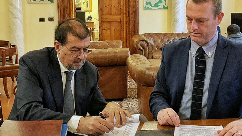 Questa mattina Eugenio Chiazzolla, funzionario in servizio presso la Direzione Regionale Lazio dell'Agenzia del Demanio, in qualità di Responsabile dell'Unità Organizzativa Servizi Territoriali Lazio 1; intervenuto su delega del Direttore Regionale Lazio dell'Agenzia del Demanio Giuseppe Pisciotta ha firmato, alla presenza del sindaco di Tarquinia, Alessandro Giulivi, la concessione a titolo definitivo non oneroso, la Pineta di San Giorgio.