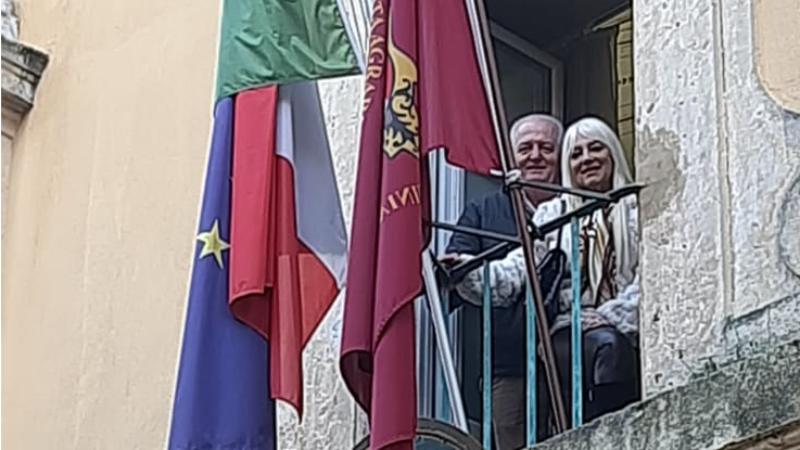 Tutti si sono voluti affacciare al balcone dal quale, 150 anni fa, Giuseppe Garibaldi ringraziò il popolo tarquiniese che lo acclamava.