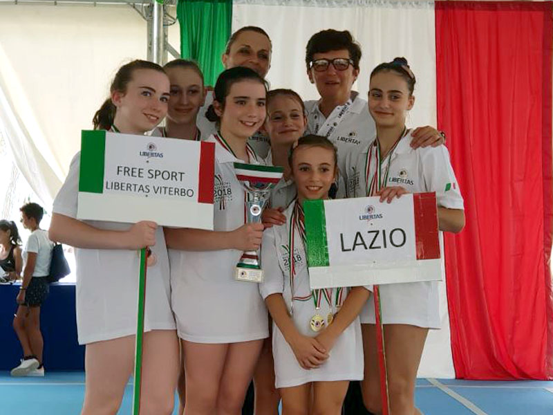 Nel concorso a squadre, la Free Sport era composta da Elena Bonelli, Chiara e Sofia Fabbri, Vittoria e Francesca Mei ed Elisa Tortolini e si è aggiudicata il titolo di squadra migliore di Italia con un bellissimo primo posto, laurenandosi campionesse Libertas d’Italia anno 2018.
