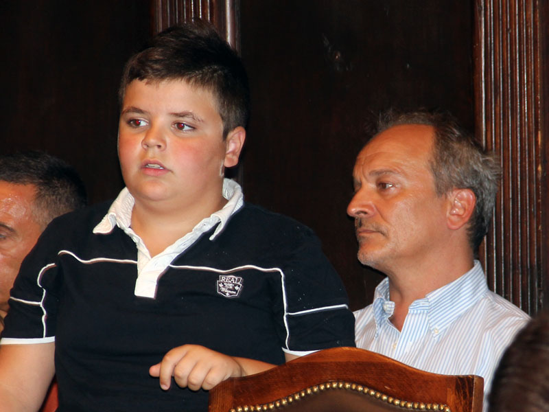 Tanta commozione per Raffaele Ascenzi, specie per le parole appena ascoltate da Sandro, già sentite nell'incontro con i suoi genitori, quando ha comunicato la dedica a Nicoletta: "Ne siamo onorati e sentiamo stretto il Sodalizio e i cittadini tutti. Quest'anno ho due cifre tonde: 30 anni dal mio ingresso al Sodalizio e 10 anni da ideatore. Gloria è in perfetta forma, saranno aggiunte nuove luci nella parte dei timpani, e le targhette dei nuovi facchini che ci hanno lasciato dall'88 ad oggi, i nostri fratelli che ci danno forza. Grazie a suor Francesca per la cassetta delle preghiere in Santuario: l'anno scorso ne abbiamo raccolte 8.000. Saluto aggiungendo l'emozione per la presenza di mio figlio Silverio tra facchini del centro storico e approfitto per fare i complimenti a Pilastro e Santa Barbara".