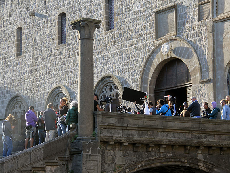 Le riprese proseguiranno anche domani, e poi si sposteranno a Caprarola, Palazzo Farnese.