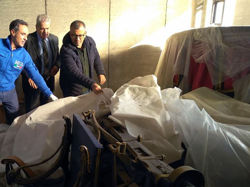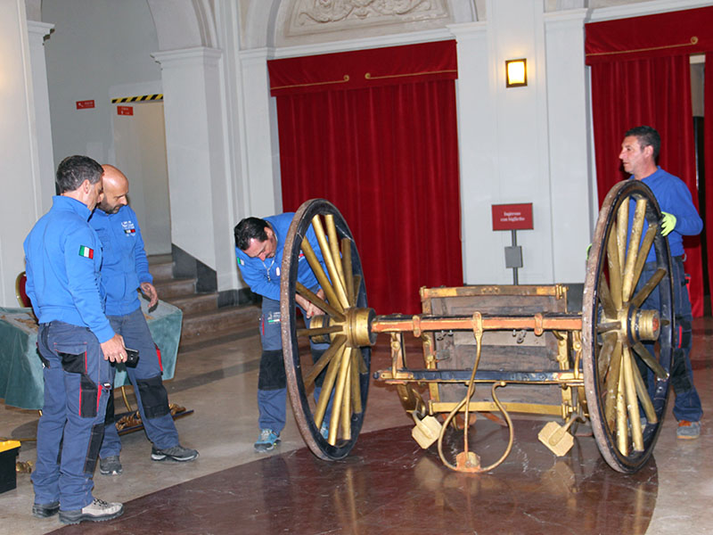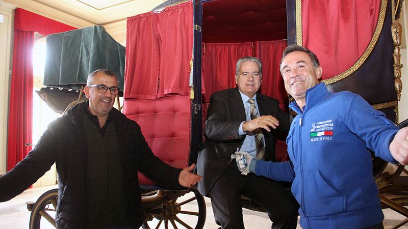 Alle operazioni erano presenti le restauratrici di Tessili Antichi, la onlus che si occupa di costumi e tessuti storici e che nel 2008 ha restaurato il mantello del postiglione, che nel XIX secolo guidava la carrozza, ora conservato nel Monastero di Santa Rosa. Magari, in futuro, i due oggetti potranno tornare vicini.