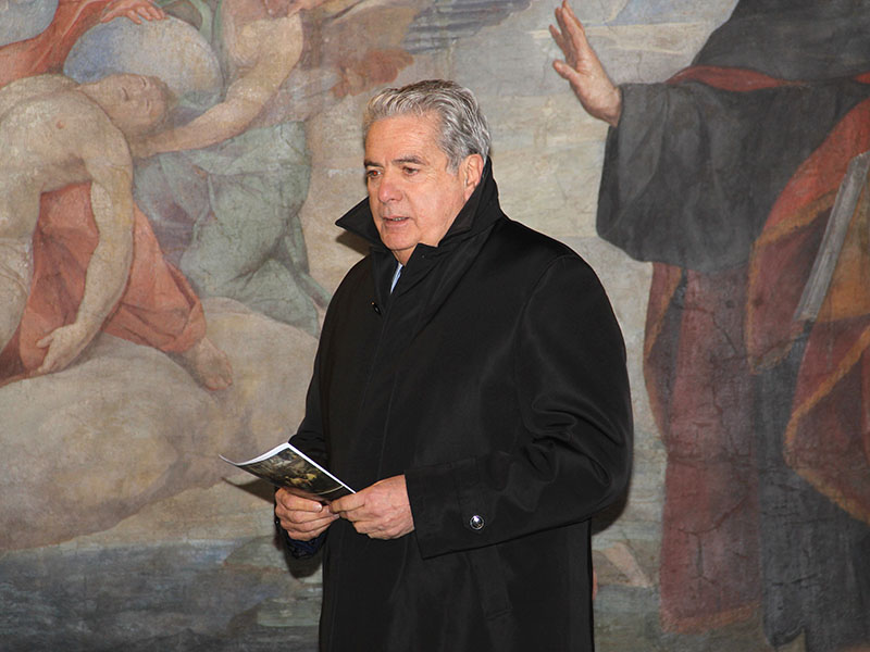 L'occasione è stata la presentazione del restauro finanziato dalla Soprintendenza di tre affreschi staccati dal coro del convento femminile della chiesa, demolita negli anni '50 per realizzare un complesso di case popolari a San Faustino, e lasciati all'incuria per una cinquantina d'anni, come spiegato dall'ing. Santino Tosini: "Questi tre strappi sono stati ritrovati insieme a tante altre opere durante il restauro della torretta del Palazzo Papale. Ringrazio la Soprintendenza per il restauro".