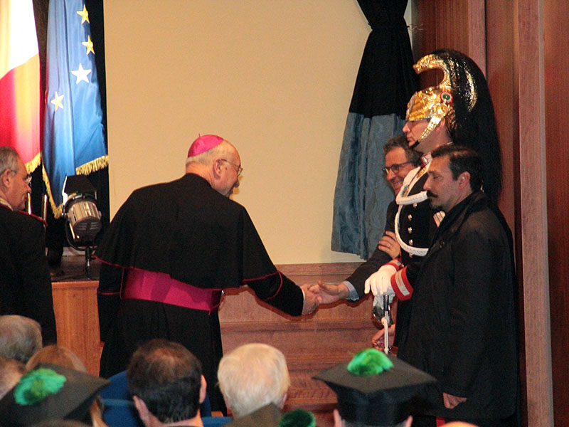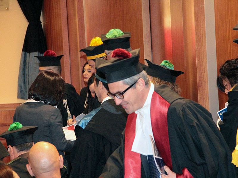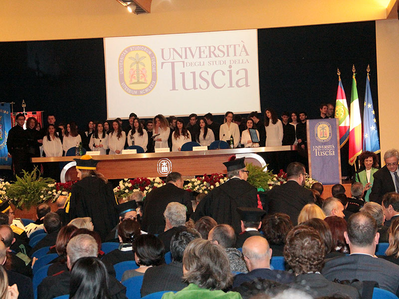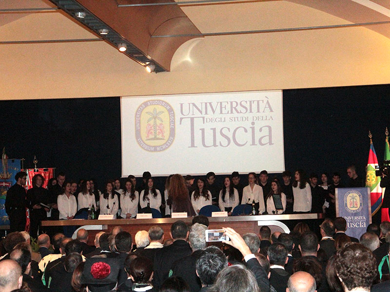 VITERBO – Auditorium in attesa già dalle 10.30, autorità in prima fila, dal vescovo Fumagalli al presidente del consiglio comunale Evangelista, dall'onorevole Rotelli al vice presidente Regione Lazio Smeriglio, all'assessore regionale Troncarelli e al consigliere Panunzi, agli assessori e ai consiglieri comunali. Dietro i rettori delle altre Università, i rappresentanti delle associazioni e attività produttive, i docenti e un gruppo di selezionati studenti.