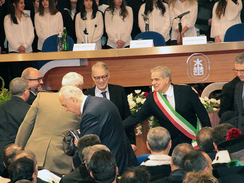 Il presidente saluta e ringrazia per i calorosi applausi, il rettore Ruggieri dichiara aperto l'anno accademico, un'apertura decisamente sbilanciata in positivo verso la ricerca, le facoltà scientifiche ambientali, che potrebbero dare le risposte che il Paese e il mondo chiedono, come sottolineato dallo stesso presidente.