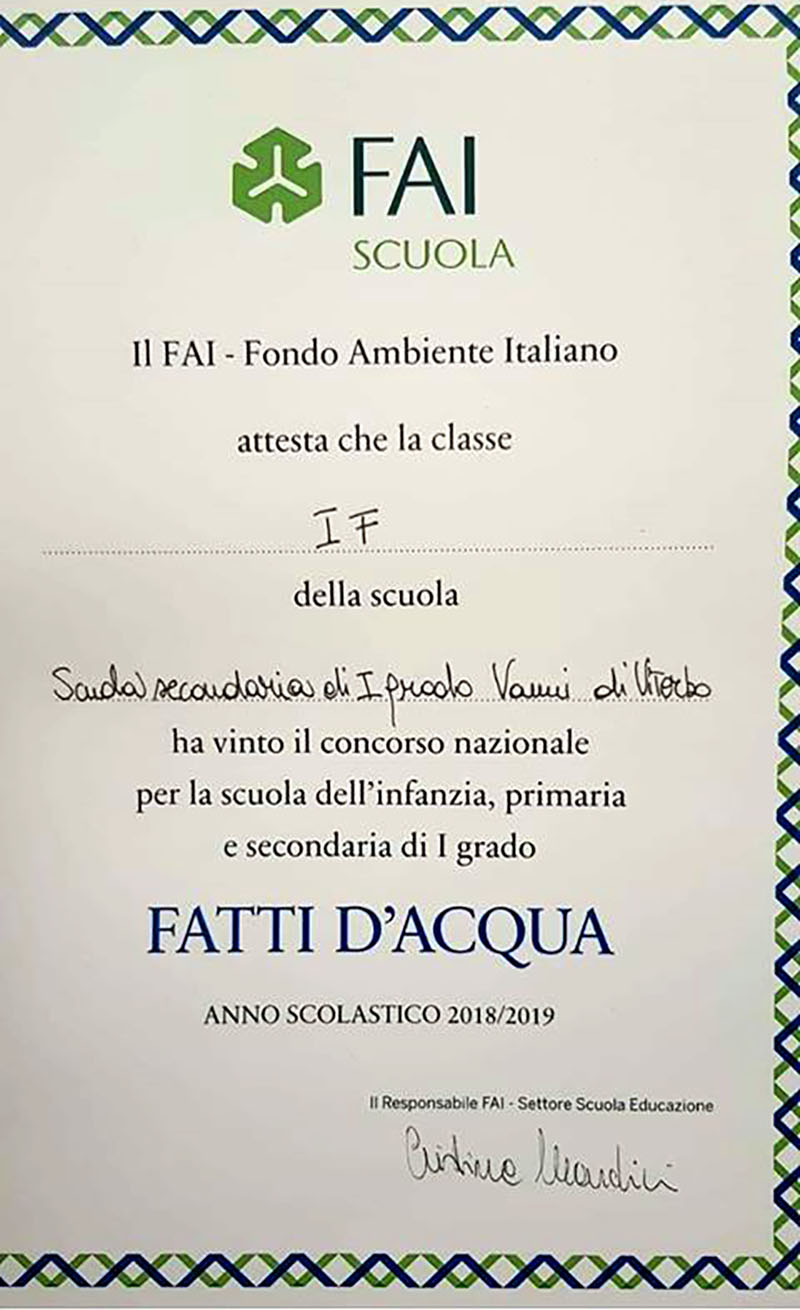 Per gli studenti anche una nota di complimenti dal Senatore Francesco Battistoni (Forza Italia): "I miei complimenti alla prima F della scuola secondaria di primo grado Vanni di Viterbo, che ha realizzato un progetto sui vecchi lavatoi di peperino della città, aggiudicandosi il premio speciale Classe amica Fai Topolino del concorso 'Fatti d'acqua'.