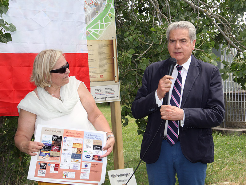 "Il Cammino ha un significato importante nella mia vita, perché giunti alla meta non è l'arrivo ma il punto dove ci si accorge quanto diversa diventa la vita. Conosco il Cammino di Santiago che è stimolo economico - ha precisato la Croci inaugurando la cartellonistica al Bagnaccio - la Francigena deve invece diventare percorso di vita. Qui passano 30 mila persone che hanno tante necessità, tra cui l'incontro con gente del luogo. Viterbo per ora è solo un punto di transito veloce tra Montefiascone e Vetralla. Questo deve cambiare, e grazie al supporto dell'imprenditoria, specie di Andrea Belli ed AnceViterbo, è cambiato tutto, facendo poi aderire Comune e tante associazioni. Intorno a questo progetto ora ci sono commercianti, che avranno un timbro per le credenziali, cartine e una vela informativa che mostra dove possono essere accolti. Partiamo da questo luogo bellissimo, con un cartello sulla strada, per chi transita, e uno all'interno, per i pellegrini che si potranno rifocillare prima degli ultimi 4 chilometri verso Viterbo. Grazie agli amministratori coinvolti nel progetto".