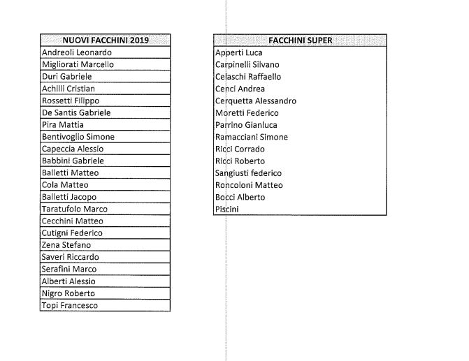 Come ogni squadra dove l’allenatore mette in campo le forze migliori, altrettanto avviene nella Formazione del Trasporto, laddove il Capofacchino, insieme al Consiglio Direttivo, schiera il meglio. Infine è giusto e doveroso parlare dei 22 nuovi Facchini - concludono - i quali hanno realizzato il loro sogno portando una ventata di freschezza ed entusiasmo nel sodalizio e grande gioia nei loro cuori e nelle loro famiglie. A queste nuove leve il Consiglio Direttivo porge il più caloroso benvenuto, auspicando una carriera lunga e piena di soddisfazioni".