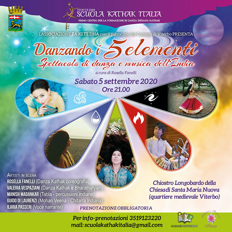 Il terzo momento sarà lo spettacolo, sempre sul tema dei cinque elementi, sabato 5 settembre alle 21, nel chiostro longobardo della Chiesa Santa Maria Nuova, pensato per restituire agli spettatori, attraverso l'arte millenaria come quella indiana, uno spazio energetico fatto di rituali e musiche tradizionali, frutto di un'esperienza di ricerca che crea così un ponte e un dialogo tra occidente e oriente, mettendo in risalto le possibili similitudini tra culture arcaiche.
