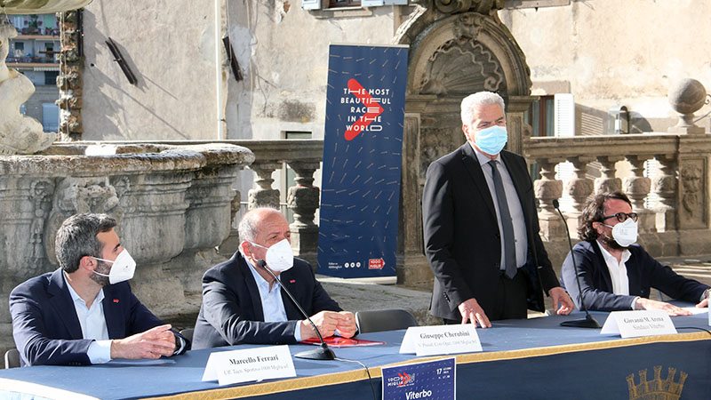 Tante le novità annunciate sul percorso sportivo da Giuseppe Cherubini, vice presidente 1000 Miglia Srl: "Viterbo è ormai parte integrante del percorso tra Brescia e Roma, specie perché è la prima città che si incrocia dopo Roma e tutti hanno bei ricordi di Viterbo. Per la prima volta faremo il percorso antiorario, toccando tutti e tre i passi storici, e ceneremo a Viterbo, con 110 auto supercar ferrari che alle 17.30 arriveranno e ceneranno, poi dopo un'ora le 400 auto storiche e le elettriche, da quando abbiamo aperto il futuro alla gara. Le notizie sulle estensioni sul coprifuoco che stanno arrivando oggi ci stanno rincuorando e faremo al meglio, con tutta la sicurezza. Lo scorso anno siamo stati presi come esempio e vogliamo dimostrare che rispettando le regole ci si può divertire. Grazie all'amministrazione e all'Aci e a tutti quelli che hanno permesso di tornare a Viterbo".