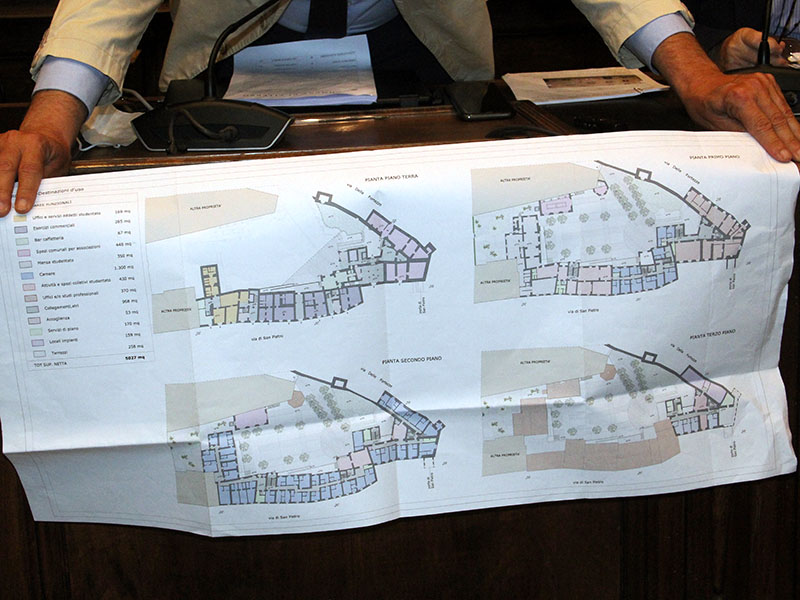 A favore del Comune e della città saranno messi a disposizione 500 metri quadrati per uffici comunali: "Penso che li destineremo, se finiremo entro la legislatura, all'assessorato centro storico e spero a quello della cultura. Siamo disponibili a ricevere questi tipi di Project Financing, invitiamo a farlo per il Lazzaretto, il Cinema Genio... tutti ne parlano ma non arriva mai nulla di certo. Noi siamo qui - conclude l'assessore al bilancio che si toglie anche un sassolino dalla scarpa -: presto affideremo di nuovo la Zaffera e approfitto per sottolineare il caos che abbiamo trovato, sia di chi lo aveva in carico che di chi lo gestiva. Abbiamo dovuto pulire tutto al posto loro".