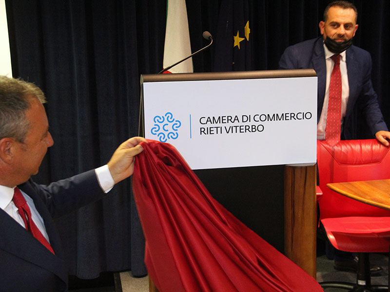 E' il momento di scoprire il logo, finora protetto da un drappo rosso, che viene mostrato a tutti, con disponibilità a cambiarlo una volta organizzate tutte le attività della nuova Camera di commercio.