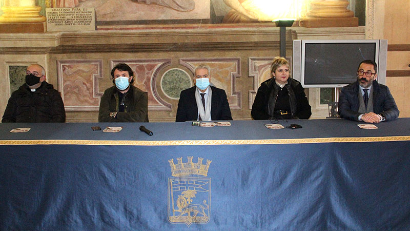VITERBO - Tornano i tradizionali appuntamenti di "Natale in Basilica", nel Santuario della Madonna della Quercia in collaborazione con la Pro Loco Viterbo, il Comune di Viterbo e Confartigianato, presentati a Palazzo dei Priori da don Massimiliano Balsi, parroco e rettore della basilica santuario e da Irene Temperini, presidente associazione Pro Loco Viterbo e responsabile eventi culturali del santuario, alla presenza del sindaco Giovanni Maria Arena, dell'assessore alla cultura e al turismo Marco De Carolis e del direttore di Confartigianato Andrea De Simone.