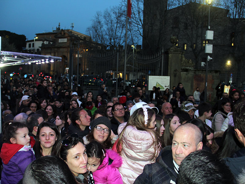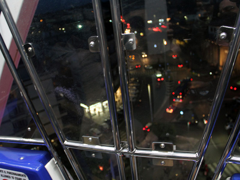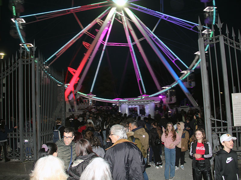 Al primo giro sale anche la stampa e c'è voglia di divertirsi, tra leggeri brividi di paura, la ruota, pur sicurissima, è molto alta, e l'imbrunire non aiuta a prendere punti di riferimento. Sotto, sempre più piccoli, tanti viterbesi in fila. Giusto un giro e si lascia la cabina agli altri, per permettere a più gente possibile di salire, il tempo stringe e l'ora scorre veloce.