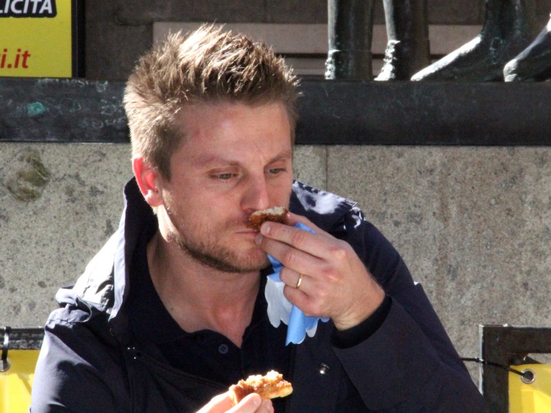 L'incontro si è concluso con il curioso assaggio della pizza con le patate, ricoperta di zucchero e cannella, prodotto molto conosciuto a Viterbo che Fulvio non aveva mai assaggiato, mostrandosi curioso di conoscerne i dettagli.