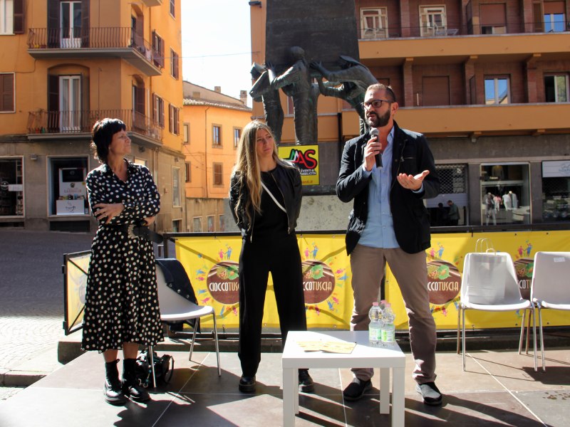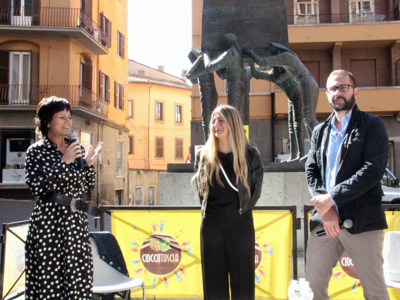 VITERBO - Giornata celebrativa per CioccoTuscia che si apre al mondo della letteratura, e del salato, con la presentazione del libro di Fulvio Marino, e torna a celebrare gli ambasciatori della Tuscia, stavolta premiando la campionessa di pattinaggio artistico a rotelle Ludovica Delfino.