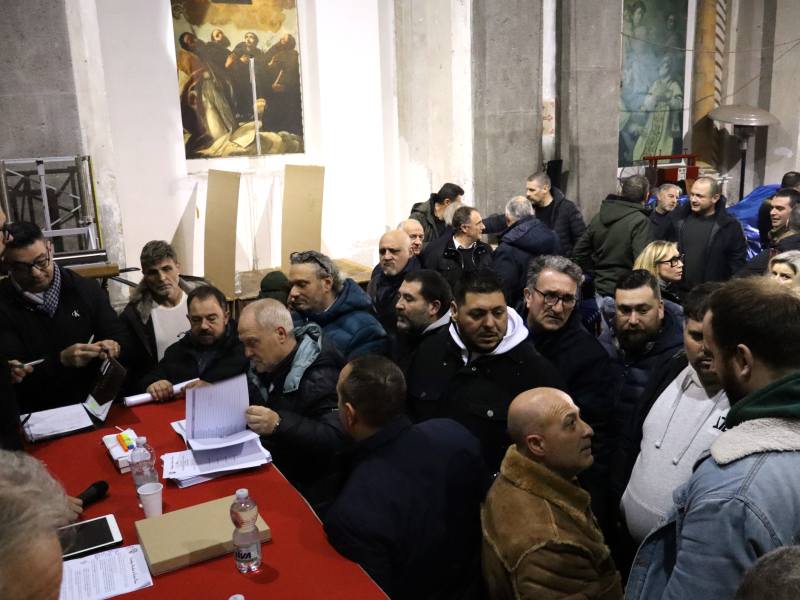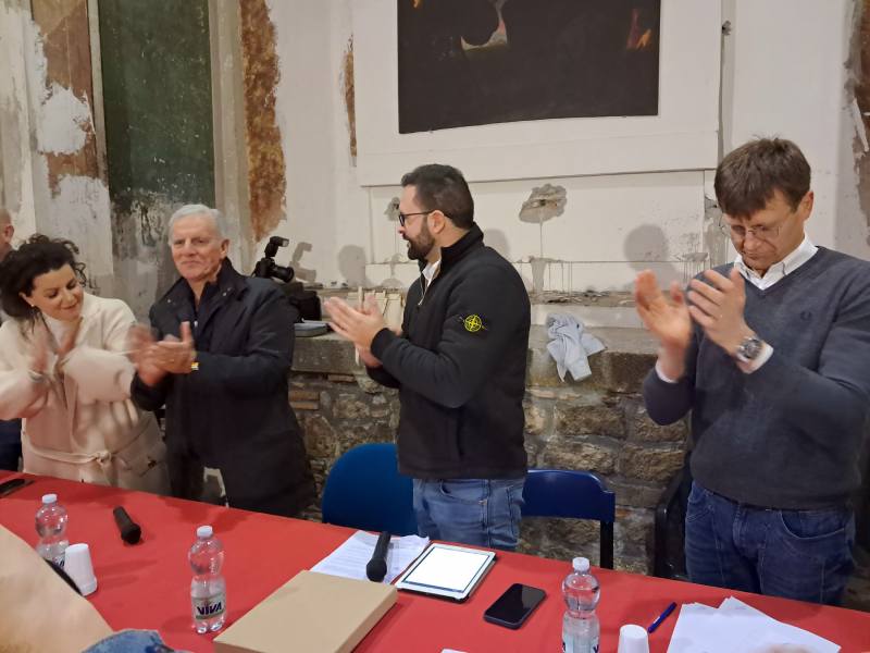 Approvato il bilancio arriva il punto dell'ordine del giorno più atteso, il rinnovo delle cariche, che per larghissima parte è a lista unica, segno di un grande lavoro fatto in precedenza, che oggi permette la votazione per acclamazione. Si votano, tutti all'unanimità per alzata di mano, i revisori dei conti (Daniele Montagnini, Alessandro Taratufolo, Daniele Costantini), poi i consiglieri (Massimiliano Perandria, Maurizio Tombolella, Maurizio Marinetti, Stefano Corbucci, Andrea Schiaffino), e poi il capofacchino, Luigi Aspromonte, che accoglie l'ovazione al coro "Gigi, Gigi Gigi", abbraccia e ringrazia, sciolgendosi poi nel saluto con Lorenzo Celestini.