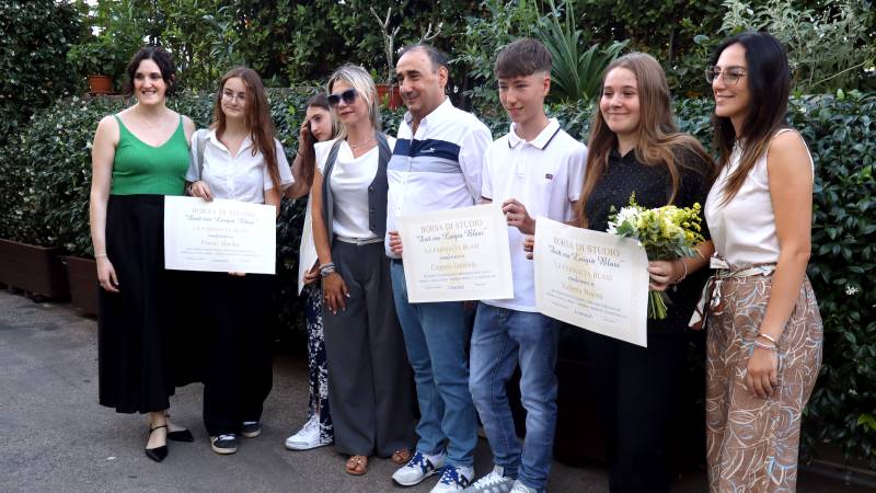 VITERBO - Celebrata la consegna dei diplomi delle borse di studio Luigia Blasi, quarta edizione, durante un incontro privato nel giardino davanti all'ingresso della Farmacia che per decenni è stata la "casa" della dottoressa Gina.