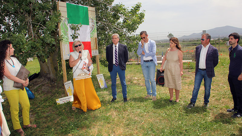 VITERBO - La via Francigena come promozione del territorio e soprattutto la città dei papi in supporto dei pellegrini che quotidianamente l'attraversano. Si aggiunge la segnaletica fortemente voluta dalla professoressa Alessandra Croci, che da anni lavora al progetto anche con l'aiuto dell'ex consigliere regionale Sabatini, oggi supportata da Ance Viterbo, Banca di Credito cooperativo di Roma, Comune di Viterbo e un nutrito gruppo di commercianti viterbesi.